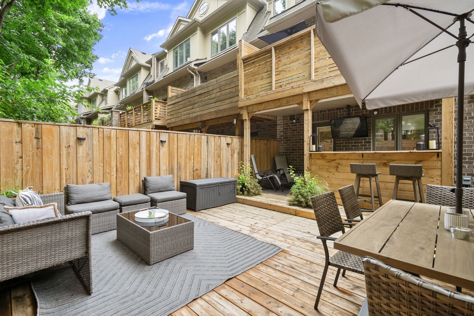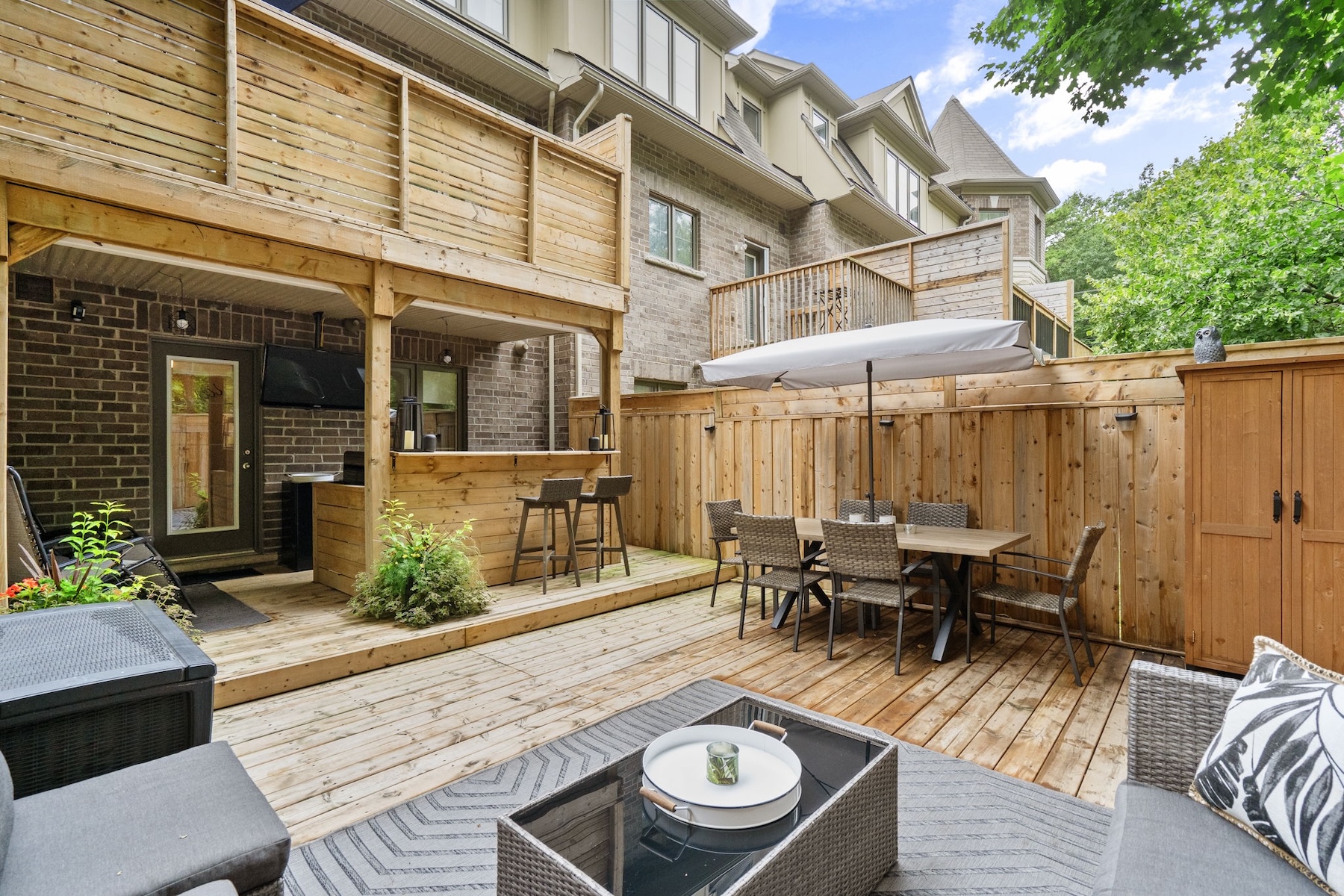 Step outside to your fully updated backyard retreat, complete with an outdoor bar, dining area, and private lounge perfect for summer entertaining or relaxing evenings at home.